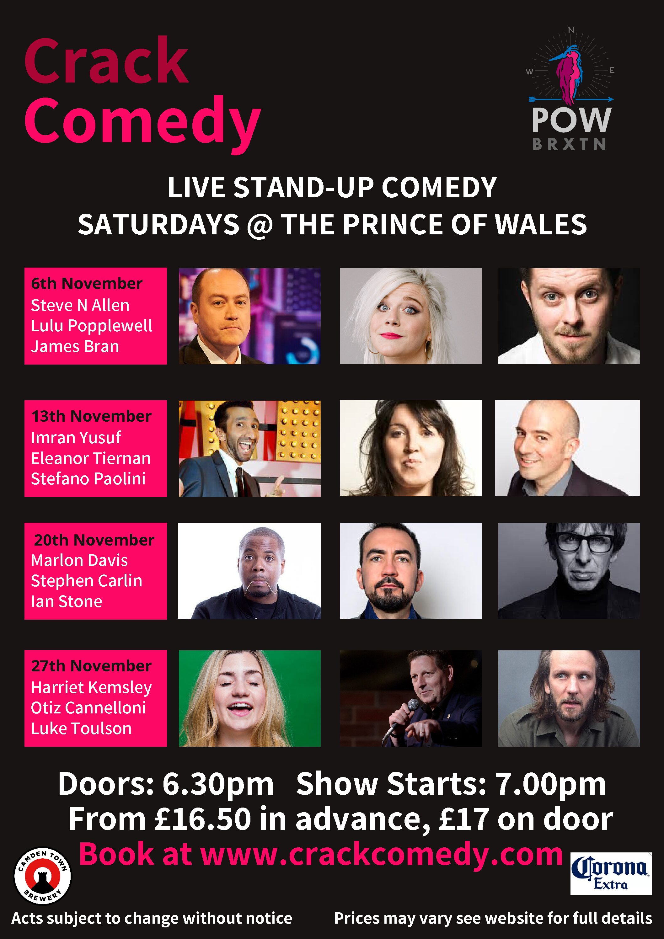 Live Comedy in Brixton every Saturday night at the historic Prince of Wales.